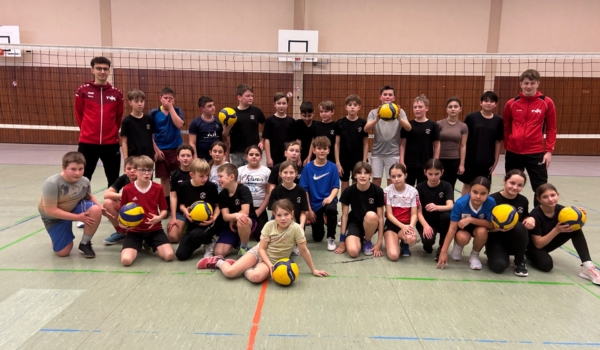 Zwei Stunden voller Bewegung, Motivation und Teamgeist: Die sportbegeisterten Schülerinnen und Schüler der Klassenstufe 5 sowie der Sportklasse 6 der Schlossbergschule trainierten gemeinsam mit den jungen Volleyballtrainern Nico Storz und Tom Bürk vom TV Kappelrodeck sowie mit Lehrerin Simone Pütz.