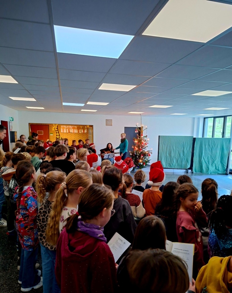 Zur musikalischen Einstimmung erklang das Lied „Christbaumkugeln“, begleitet von den Lehrerinnen Melanie Brandt und Marén Bücker an der Gitarre. Den Abschluss bildete das stimmungsvolle Lied „Lichterkinder“, das alle gemeinsam sangen.